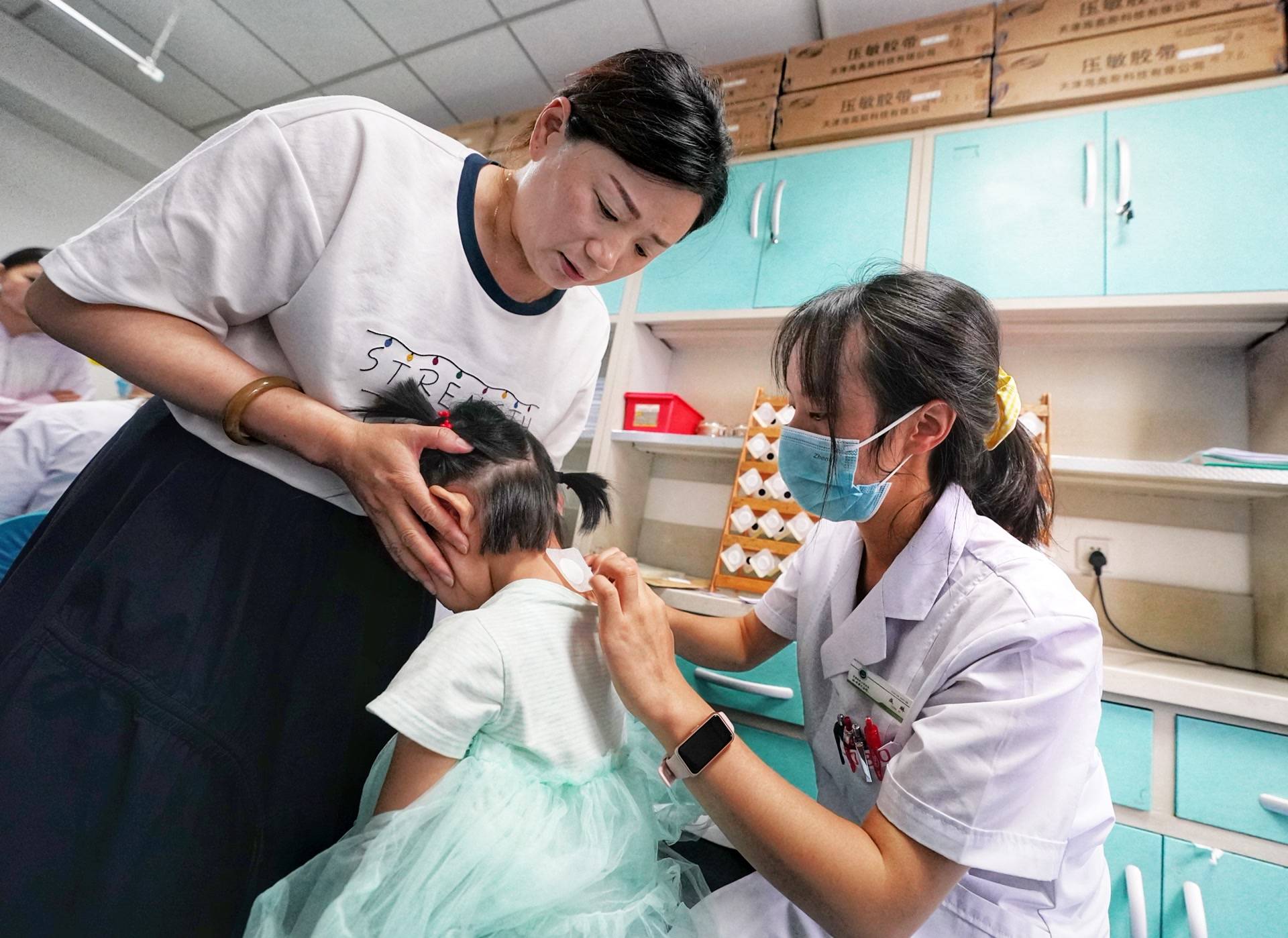 不仅大人,患儿也可以贴敷三伏贴。在该社区卫生服务中心儿科诊室,医师王大宇为一名3岁的男孩贴三伏贴。他嘱咐患儿家长:“宝宝年纪小,贴上的膏剂1到2小时后就可以拿下来了。” 7月20日,在北京中医医院,医护人员正在为就诊大、小患者贴“三伏贴”。 本报记者 方非摄 北京中医医院呼吸科副主任医师孟广松介绍,三伏贴主要针对冬季易发的呼吸系统疾病,如慢性支气管炎、过敏性鼻炎等,尤其适合阳虚体质或寒证患者。但发热、急性感染、皮肤破损或过敏体质者不宜贴敷。今年三伏从7月20日持续至8月18日,共30天。三伏贴每伏需要连续贴敷3日。患者贴完后避免剧烈运动,饮食要清淡。“建议首次贴敷者要到正规医院,由医生根据个体情况制定方案。” 市中医局介绍,本市医疗机构必须经区卫健委和该局三伏贴资质审批通过后,才能开展三伏贴服务。可开展三伏贴服务的医疗机构名单已在该局官网公示,均严格执行“冬病夏治三伏贴”服务收费管理。 来源:北京日报客户端 记者:孙乐琪,柴嵘,方非