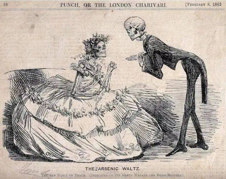 (来源:科普中国) 转自:科普中国 对于Richard Turner夫妇而言,1862年是绝望的一年。 从这一年的二月开始,他们的孩子一个接一个地染上神秘怪病,在短短几个月时间内相继死去。最终,他们所剩的最后一个孩子——三岁的Ann Amelia Turner——也出现了同样的症状。她变得极度衰弱、无法吞咽,在痛苦中离开了人世。 最初,当地医生认为这些孩子染上了白喉——这种呼吸道传染病在19世纪十分常见,它确实夺走了很多孩子的生命。但事情显得有些蹊跷:Turner家的几个孩子相继患病身亡,但和他们密切接触的其他人却都安然无恙,这可不像是传染病的表现。 最终,通过对Ann Amelia遗体组织的检测,化学家Letheby终于发现了真相:这个不幸的小女孩死于砷中毒。杀死她的,是装饰在她家卧室墙上的绿色壁纸。 维多利亚时期壁纸图案 | JOHN TODD MERRICK & COMPANY, LONDON, UK, 1845